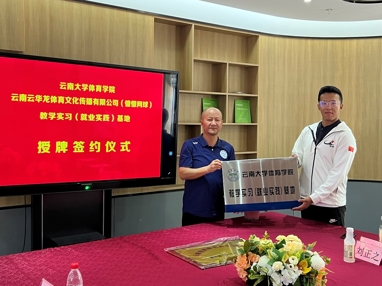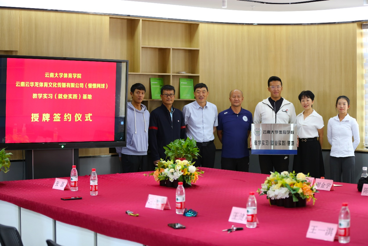7月17日,beat365在线唯一官网与云南云华龙体育文化传播有限公司(憧憬网球)共建“教学实习(就业实践)基地,在昆明憧憬网球俱乐部937校区完成签约和授牌仪式,双方将在云南网球教练员的教学实习、就业实践等方面展开合作。