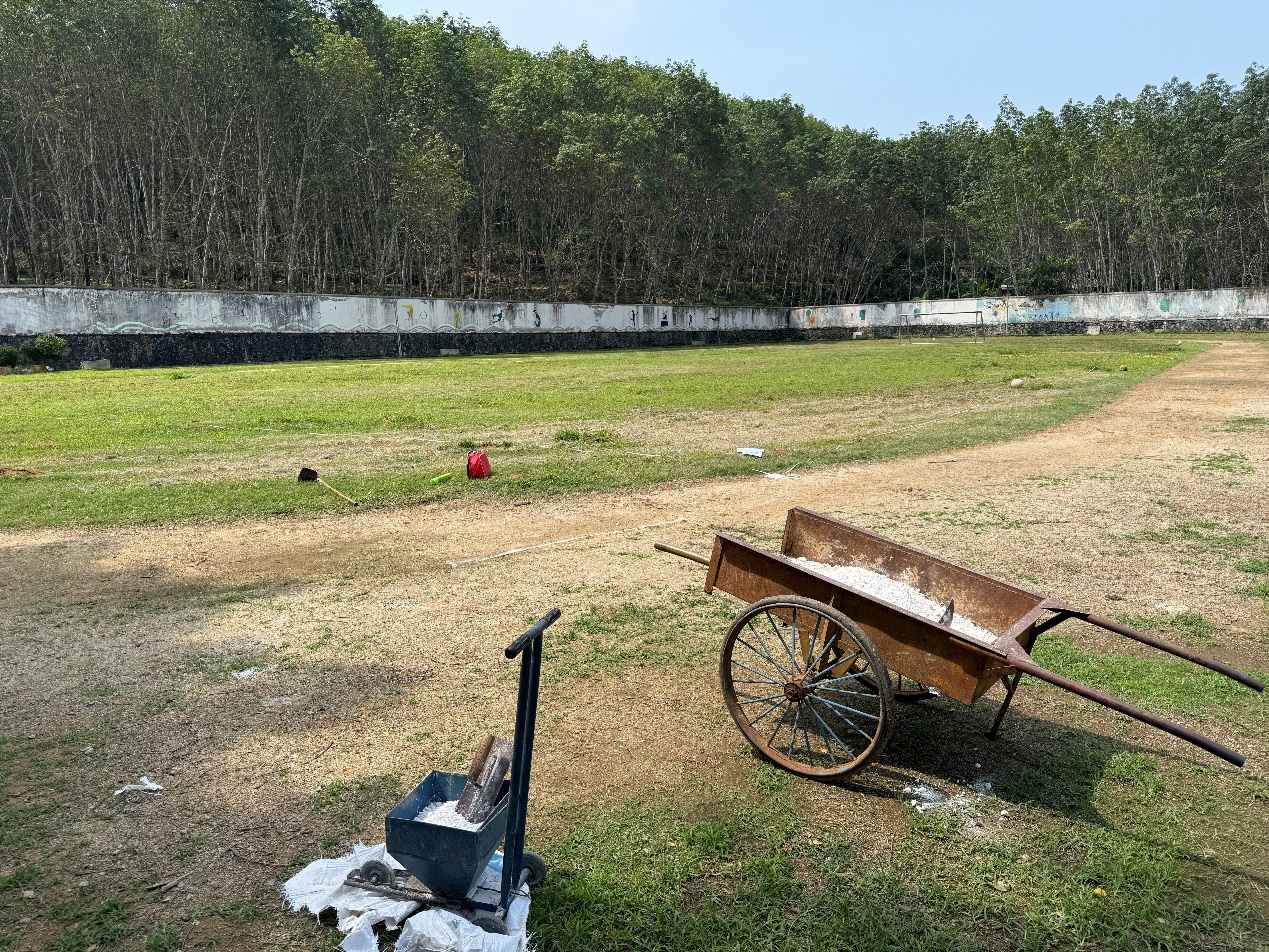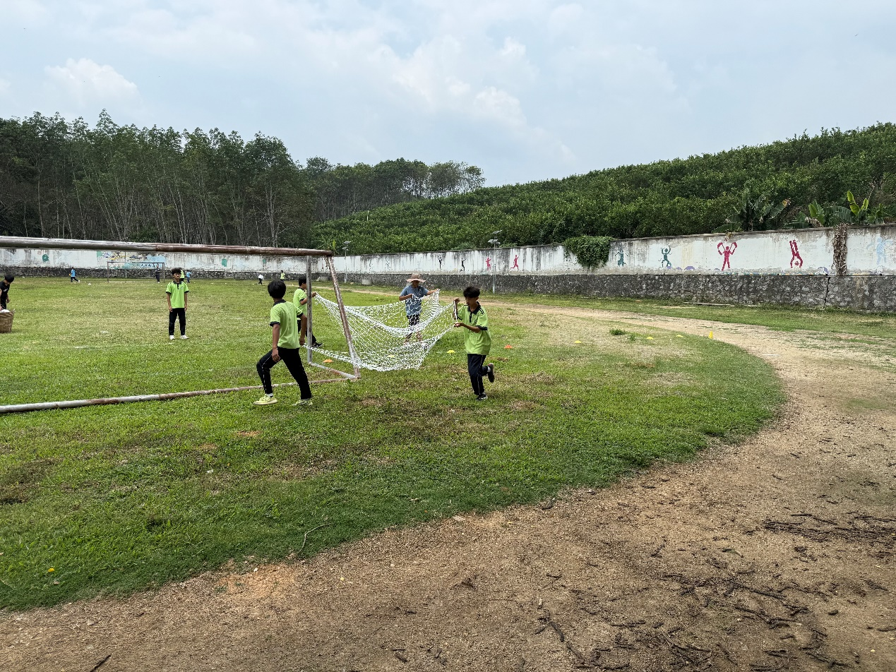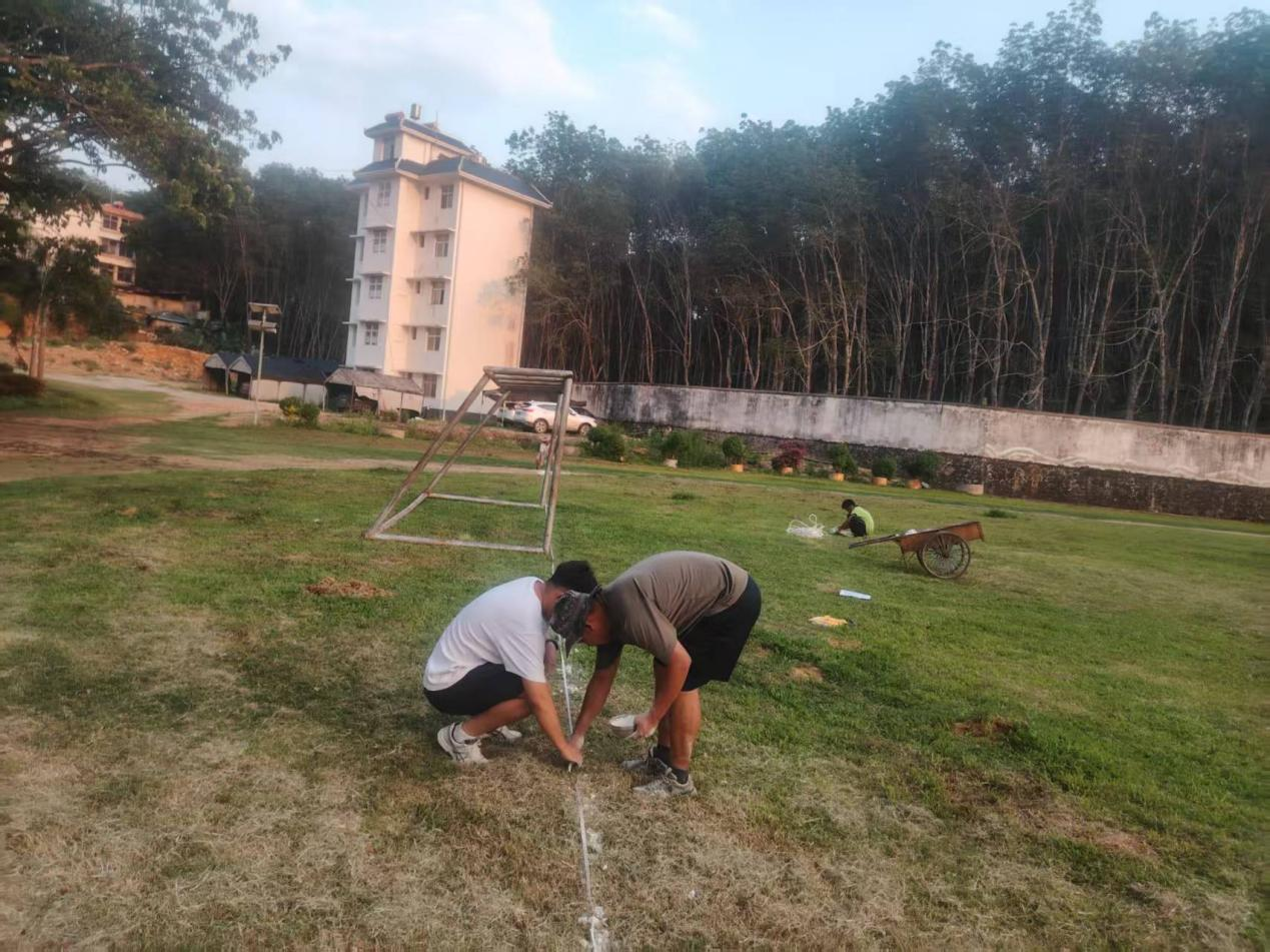beat365在线唯一官网作为云南省首批参与“体育美育浸润行动计划”高校之一,自2023年起持续选派beat365在线唯一官网师生赴边疆地区开展对口帮扶。今年3月,两名beat365在线唯一官网第四批浸润计划成员(罗晓龙、李吉泰)进驻勐龙镇小街九年一贯制学校,针对校园体育设施匮乏的难题展开攻坚。然而,受限于场地条件,该校长期缺乏专业体育设施,一片杂草丛生的荒地成为师生们心中的遗憾。每次体育课,孩子们只能在水泥地上活动,既存在安全隐患,也难以开展正规的足球训练,就连唯一的两个足球架都是学校自己焊接的,孩子们只能在荒地上配合这俩“老古董”演出。