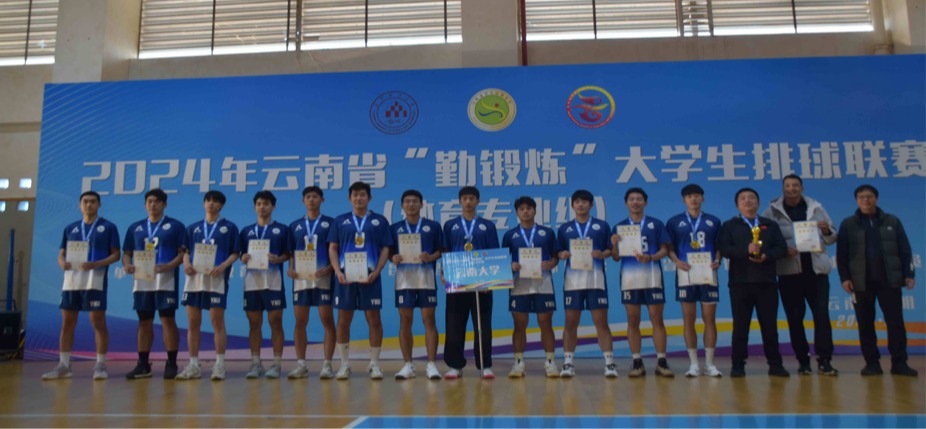 2024年11月12日至12月7日,beat365在线唯一官网排球队参加了2024年云南省“勤锻炼”大学生排球联赛,在教练员宣红波、张娜、杜盈珏老师的带领下,我校排球队运动员凭借顽强的拼搏精神和出色的团队协作,分别获得男子专业组冠军,女子专业组第四名,男子、女子阳光组季军的好成绩。