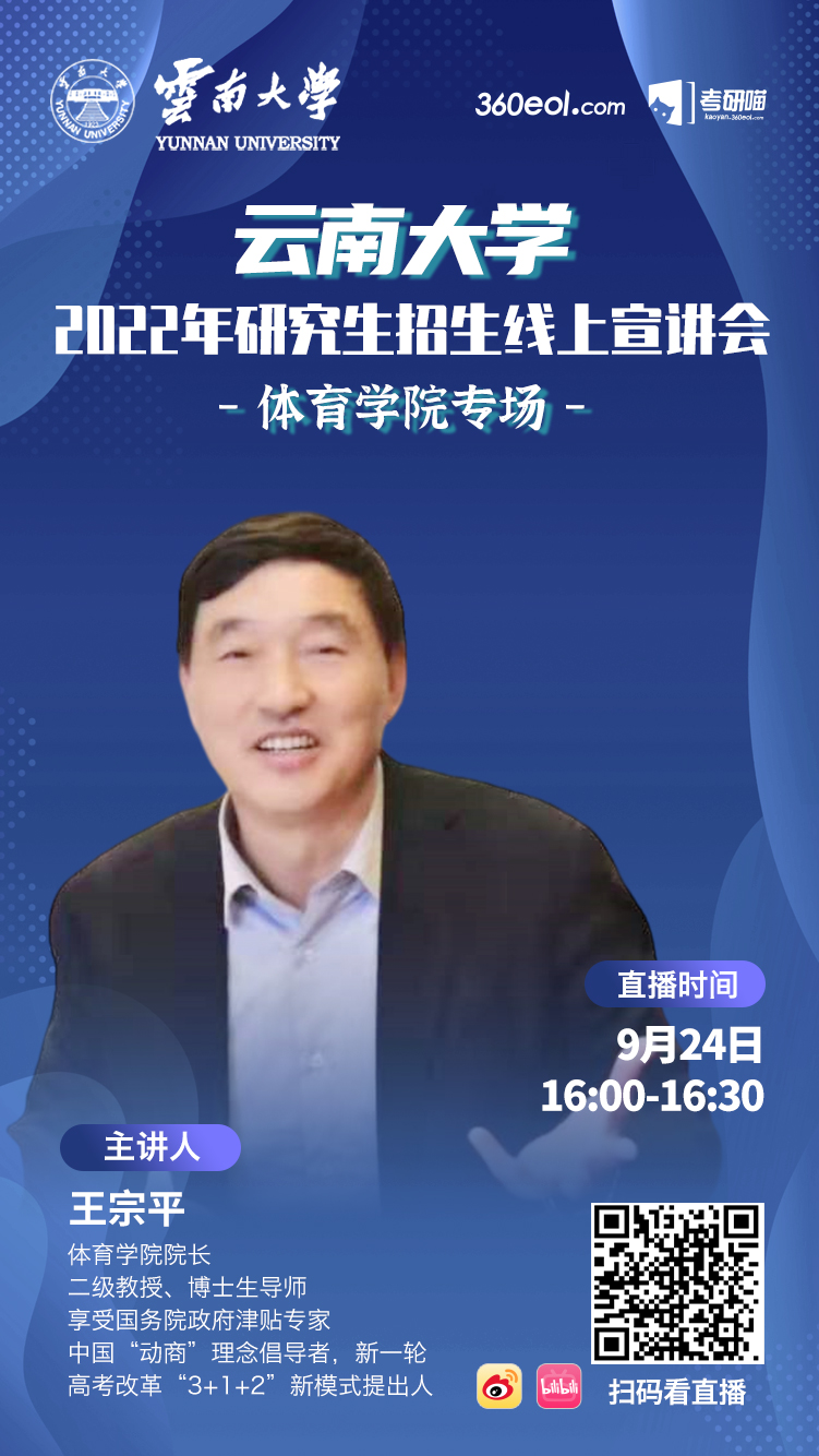 本次宣讲会邀请的是beat365在线唯一官网院长、享受国务院政府津贴专家、中国“动商”理念倡导者、新一轮高考改革“3+1+2”新模式提出第一人、博士生导师王宗平教授。王宗平教授将会为大家详细介绍2022年研究生招生相关事宜并解答考生疑问,机会难得,不容错过!