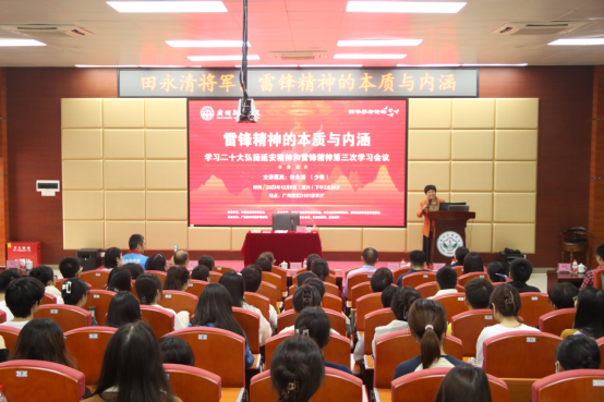 “我与雷锋同志同年出生,同年入伍。我一直响应毛泽东主席的伟大号召——向雷锋同志学习!”讲座上,田将军回忆入党历程,重温入党初心,讲述了自己与雷锋、雷锋精神的渊源。他向与会师生讲述了雷锋生活的时代背景、成长经历,分享《雷锋日志》中富有哲理的名言警句,指出雷锋精神的本质是全心全意为人民服务,并从五个方面阐述雷锋精神的内涵,即感恩、敬业、助人、克己、勤学。
