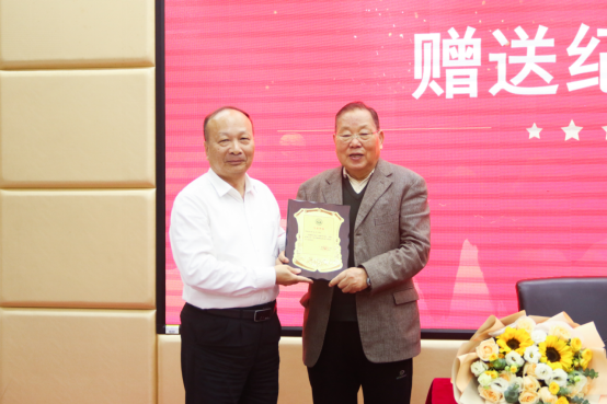 校长办公室主任黄立文向田永清将军赠送纪念品