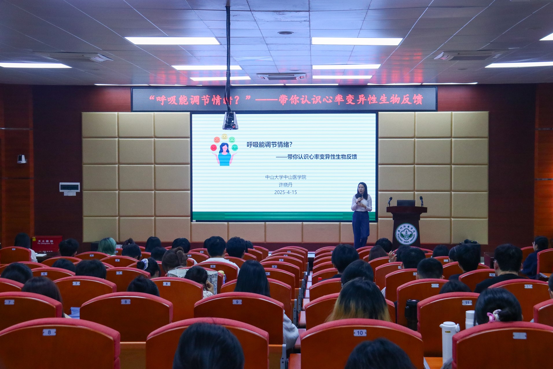 4月15日,kaiyun登录中国入口登录(以下简称“kaiyun官网”)在广州校区召开主题为“呼吸能调节情绪?——带你认识心率变异性生物反馈”的主题讲座,邀请中山大学中山医学院许晓丹博士担任主讲嘉宾,广州校区医学类专业学生约100人参加讲座。