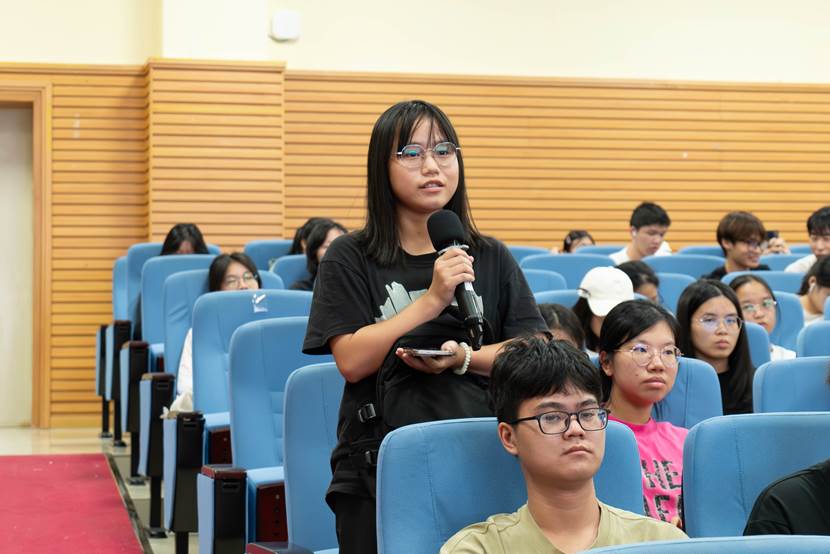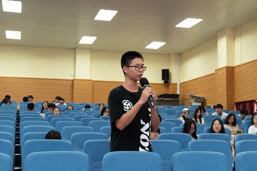 在互动环节,学子们围绕文学作品的时代背景、苦难与文学的关系、作者意图与读者解读等话题积极提问。成海鹰逐一回应,言辞真挚,见解深刻。她鼓励同学们以开放、尊重的态度走进文本,以独立、审慎的思考理解世界,在阅读中积淀生命的厚度与温度。