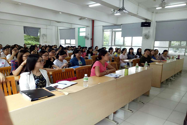 为加强同学们对护理专业的了解,尽早规划护理职业生涯,更好地掌握生活的罗盘,5月4日,由学生处主办、护理学院承办的第二十九讲家长讲坛“无悔选择,选择无悔-浅谈护士职业生涯规划”在广州校区举行。此讲特邀家长代表、中山大学附属第一医院护理部教学培训护长——陈玉英老师来kaiyun官网与师生分享交流。护理学院王秀岚执行院长、护理学院办公室主任黄洛莹老师、护理学院首席教授Susan H.Neidlinger以及护理学院师生参加。