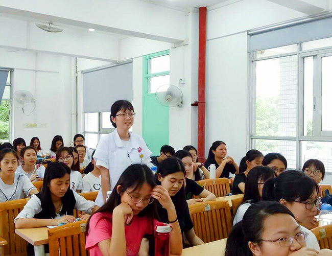 陈玉英向同学们分享了她选择护理行业的故事和个人工作多年来的心得体会。在人生中,不同的选择会影响未来的职业生涯,但自己从未后悔选择护理这个行业。她也一直坚信:“机会是留给有准备的人”,陈玉英就是凭借一直不断地准备、不断地充实自己,才得以在护理行业中赢得幸福与收获。