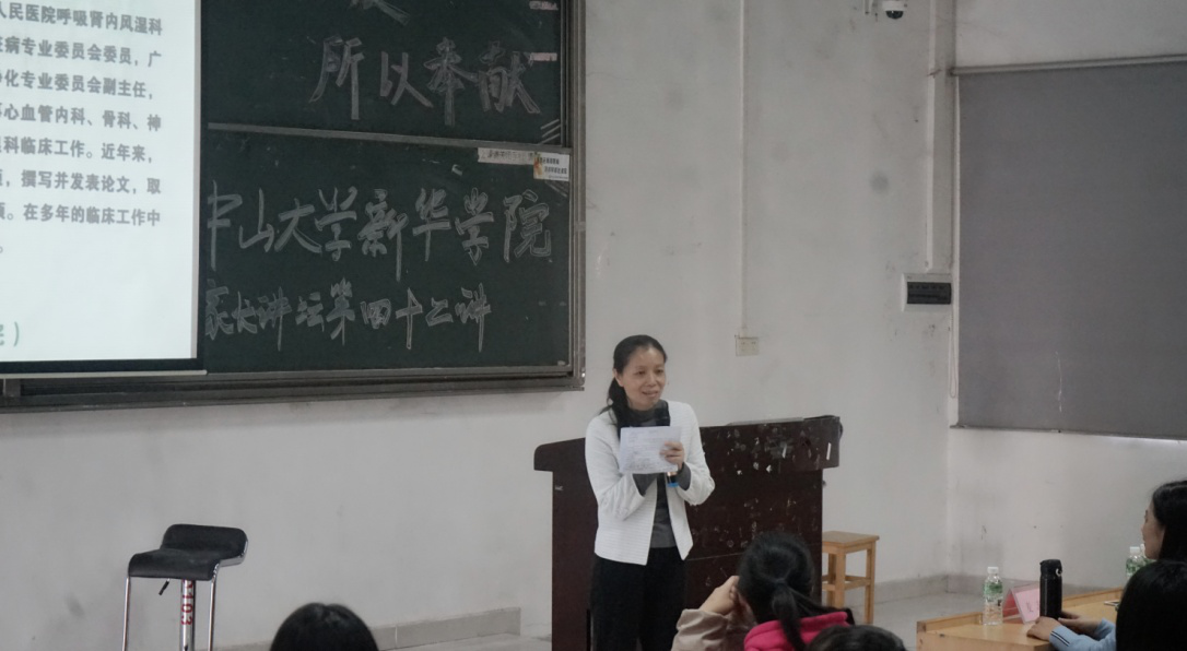 12月26日下午,由kaiyun官网主办,学生处、护理学院承办的家长讲坛在kaiyun官网广州校区教学楼D103举行。本次讲坛邀请肇庆市高要区人民医院呼吸肾内风湿科护士长——麦志芹女士担任主讲人,演讲主题为“因为热爱,所以奉献”,护理学院办公室主任黄洛莹老师主持。护理学院教师代表及2018级全体学生参与学习。