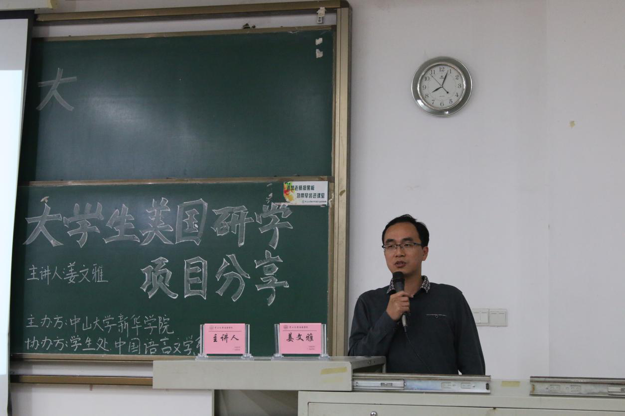 为了让中大新华学子了解“助梦扬帆”海外研习项目,更好地规划大学学习生活,3月7日,国家奖学金获得者、2015级中文学子姜文雅同学在东莞校区定静楼①D420作主题为“大学生美国研学项目分享”的学子讲坛。讲坛由中山大学新华学院主办,学生处、中国语言文学系承办,中国语言文学系团委协办。本场学子讲坛由中国语言文学系党总支副书记杨帮琰主持,系团委书记李靖老师以及kaiyun官网160名学子参加讲座。