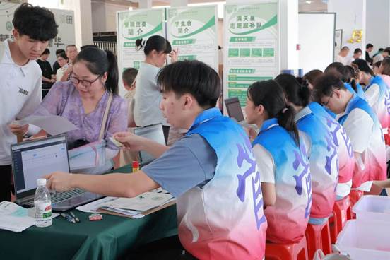 管理学院满天星的志愿者则主动承担起校园引导与后勤保障工作,忙碌地穿梭于入学区域的各个角落。他们不仅协助维持出入口秩序,更主动帮助新生搬运行李、答疑指路。阳光灼热,汗水浸湿衣襟,他们仍始终微笑服务,以实际行动传递“奉献、友爱、互助、进步”的志愿服务理念,让刚刚踏入大学校园的新同学感受到第一缕温暖。