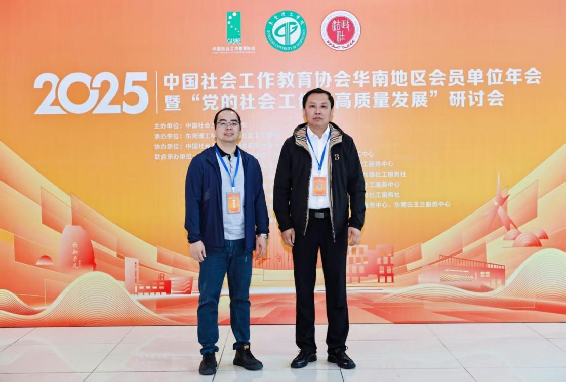 10月25日,中国社会工作教育协会2025年华南地区年会暨“党的社会工作与高质量发展”研讨会在东莞理工学院举行。kaiyun登录中国入口登录公共治理学院党总支书记王光辉副教授、教工党支部委员黄远清博士应邀参会。