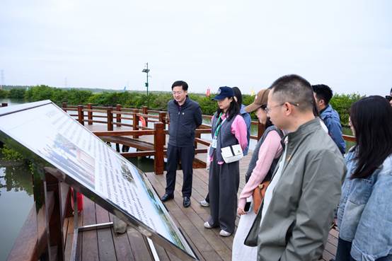 次日,研学团走进总书记亲临考察的金牛岛红树林保护区。这片中国南海最大红树林湿地(总面积2.5万亩,保护物种超300种),以盘根错节的生态屏障守护着雷州半岛海岸线。党员们沿总书记足迹巡护滩涂,记录招潮蟹、白鹭等生物多样性图景。总务处党支部书记赖少雄感慨道,红树林“根系相连”的生存智慧,恰似党建工作的凝聚力。我们将把生态理念注入校园建设,打造低碳育人环境。