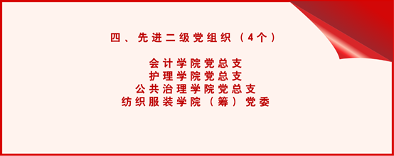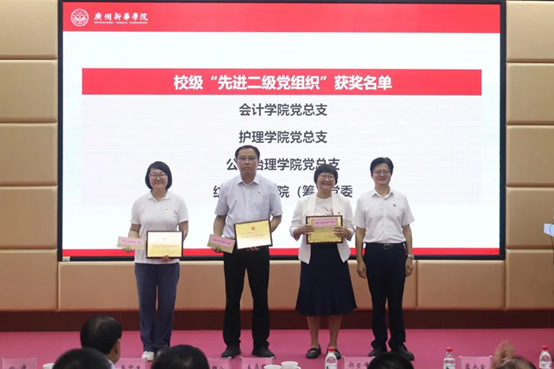 会计学院党总支杨广莉同志,护理学院党总支书记、执行院长王秀岚同志分别作为获奖个人和单位代表发言。她们紧紧围绕如何以实际行动发挥发挥党员示范带头作用,如何聚力党建与业务融合,把党建工作和业务工作同步谋划、同步部署、同步实施以及如何切实发挥党组织的战斗堡垒作用等主题分享了先进工作经验。她们表示,所取得的荣誉离不开学校党委的有力领导和各部门同志们的大力支持,在今后的工作中将继续团结身边同事,携手共进,为党的教育事业、国家的繁荣发展和广州新华高质量发展贡献智慧和力量。