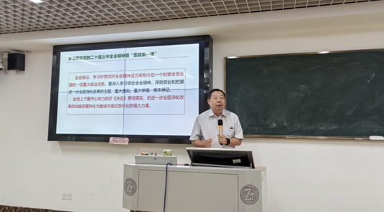 课上,黄东锋概述了党的二十届三中全会的主要内容和精神,指出全会审议通过的《中共中央关于进一步全面深化改革、推进中国式现代化的决定》是当前和今后一个时期全党全国的重大政治任务。他强调,全体师生要深入学习领会全会精神,深刻领会和把握进一步全面深化改革的主题、重大原则、重大举措、根本保证。