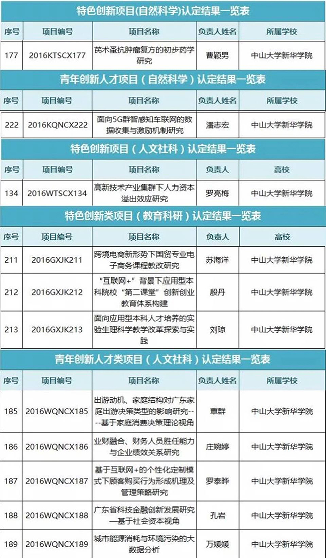 3月31日,广东省教育厅公布了2016年重点平台及科研项目立项名单。kaiyun官网共有11个项目获得立项,其中特色创新项目(自然科学) 项目1项,青年创新人才类项目(自然科学类)1项,特色创新项目(人文社科类)1项,特色创新项目(教育科研类)3项,青年创新人才类项目(人文社科类)5项。
