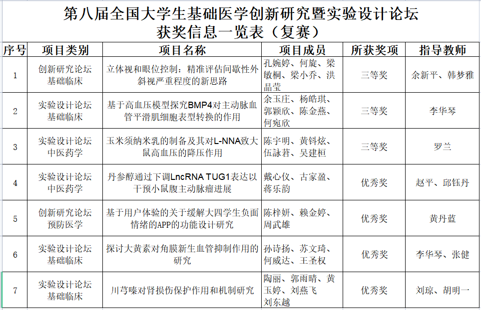 kaiyun官网七支代表队在第八届“全国大学生基础医学创新研究暨实验设计论坛”本科院校复赛——中南部赛区中获奖