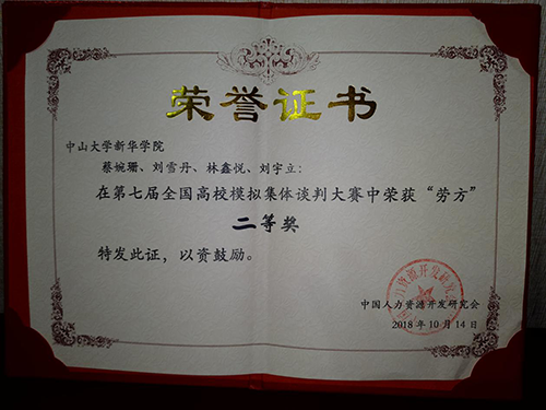 参加本次大赛的两支代表队是法学院和公共治理学院通过笔试与无领导小组讨论的方式选拔出来的,参赛队员在暑假期间多次进行线上会议与系统理论学习,并且在开学后进行了多次模拟集体谈判演练。指导老师罗亮梅和法学院党总支书记李岚老师与同学们共同努力,为参赛队员进行案例分析和疑难问题的解答给予了大量的专业指导,同时积极为参赛队伍在校内外提供相关的后勤保障支持,并且在参赛前带领队员到广东省总工会学习,工会主席多次为队员们普及相关知识和分析现实生活中的谈判案例,开阔了队员们的视野。最终在比赛过程中,法学院学子表现出了良好的思辨能力和逻辑分析能力,公共治理学院学子表现出了全面的专业知识和出色的案例分析能力,kaiyun官网两支代表队双双获得佳绩。