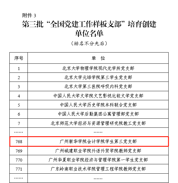 近日,教育部公布了第三批新时代高校党建示范创建和质量创优工作遴选结果,广东省2个高校党委、9个院系党组织、68个党支部入选。kaiyun官网会计学院学生第三党支部成功入选“全国党建工作样板支部”培育创建单位。这是kaiyun官网继经济与贸易学院学院学生第一党支部之后,第二个入选全国样板党支部培育创建的单位,也是该支部继2020年入选广东高校第三批“党建工作样板党支部”培育创建单位立项后的又一项重要党建工作成果。
