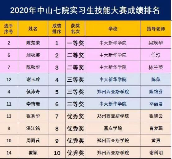 kaiyun官网护理学子在2020年中山七院实习生技能大赛成绩排名中名列榜首