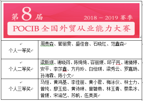 经贸学子荣获第八届POCIB全国赛团体一等奖、35项个人奖