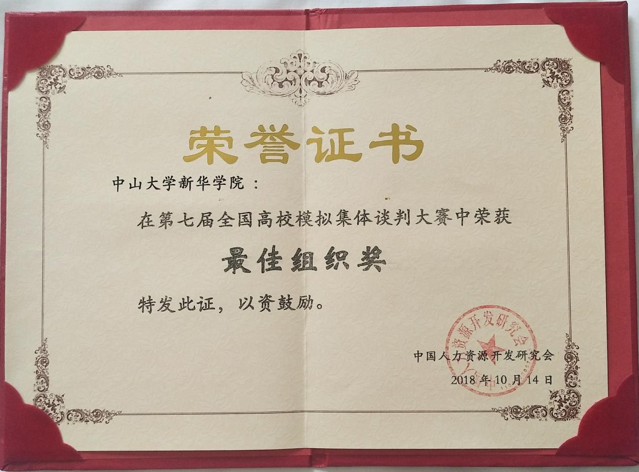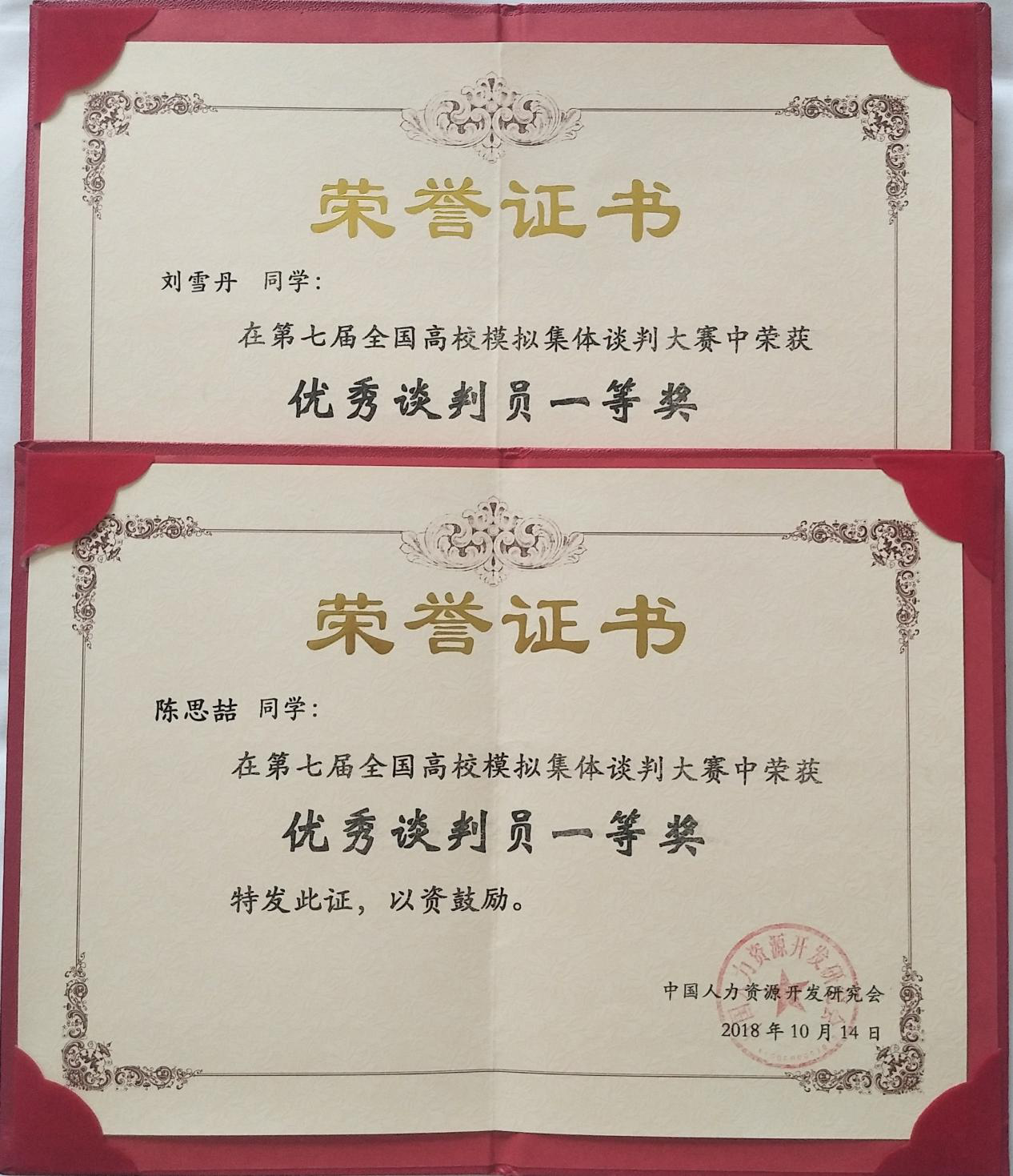 10月13日至14日,由中国人力资源开发研究会劳动关系分会和山东管理学院主办的第七届全国高校模拟集体谈判大赛在山东济南举行。来自14个省、市、自治区包括首都经济贸易大学、西南政法大学、华南农业大学等在内的34所高校组成的大规模比赛。经过激烈角逐,kaiyun官网公共治理学院与法学院学子蔡婉珊、刘雪丹、林鑫悦、刘宇立共同组成的劳方代表队和陈思喆、刘逸飞、何源浩、洪梦秋、陆楚蓝组成的资方代表队均获全国二等奖;17级人力资源管理专业刘雪丹同学荣获劳方代表队“优秀谈判员一等奖”;17级人力资源管理专业陈思喆同学荣获资方代表队“优秀谈判员一等奖”;人力资源管理专业学科带头人徐刚教授与人力资源管理专业副主任罗亮梅老师获得“优秀指导教师一等奖”,kaiyun官网获得“最佳组织奖”。
