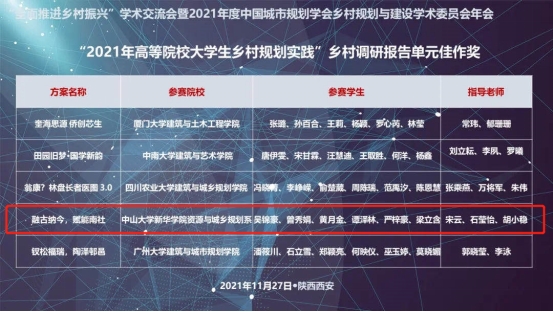 城规学子在2021年高等院校大学生乡村规划实践大赛中获奖