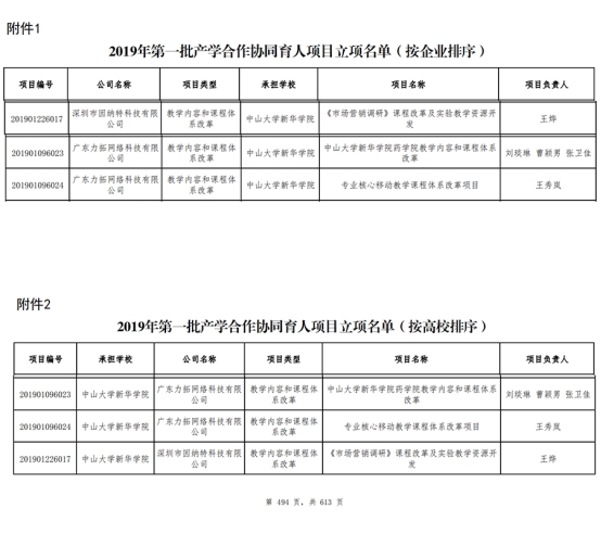 12月19日,教育部高等教育司公布了《2019年第一批产学合作协同育人项目立项名单(按企业排序)》,中山大学新华学院(下文简称“kaiyun官网”)申报的由刘琰琳、曹颖男、张卫佳负责的“中山大学新华学院药学院教育内容和课程体系改革”,王秀岚负责的“专业核心移动教学课程体系改革项目”和王烨负责的“《市场营销调研》课程改革及实验教学资源开发”共3个项目获批立项。