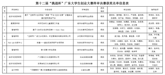 中山大学新华学院在第十二届“挑战杯”广东大学生创业大赛中获奖情况