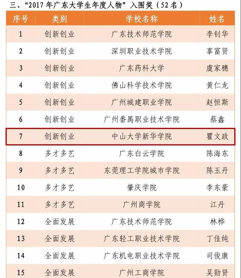 信科翟文政、经贸吴丹微获“2017年广东大学生年度人物”入围奖