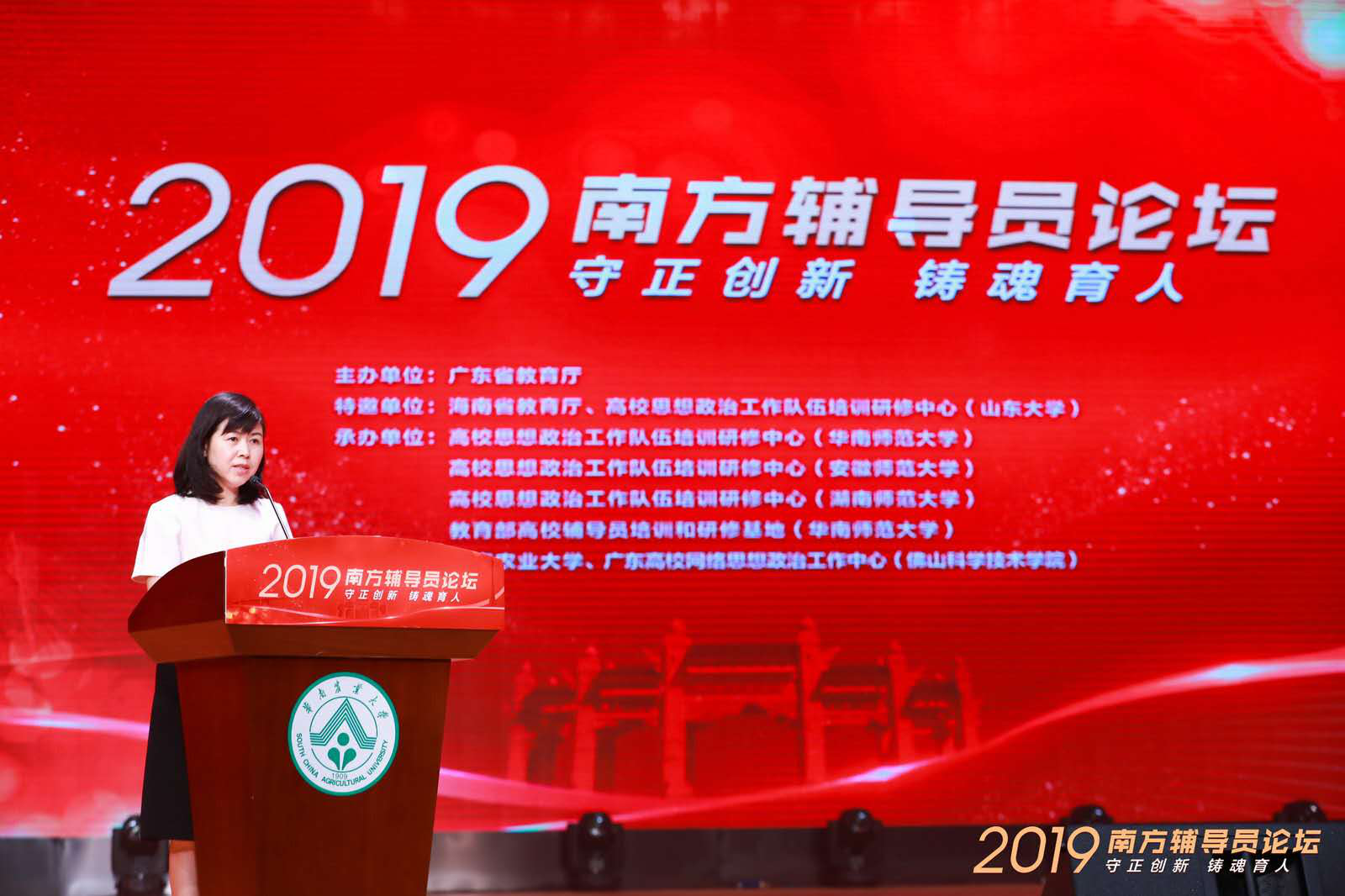 6月14日,由广东省教育厅主办,高校思想政治工作队伍培训研修中心(华南师范大学)承办,华南农业大学、高校网络思想政治工作中心(佛山科学技术学院)协办的“2019年南方辅导员论坛”在华南农业大学丁颖礼堂举行。