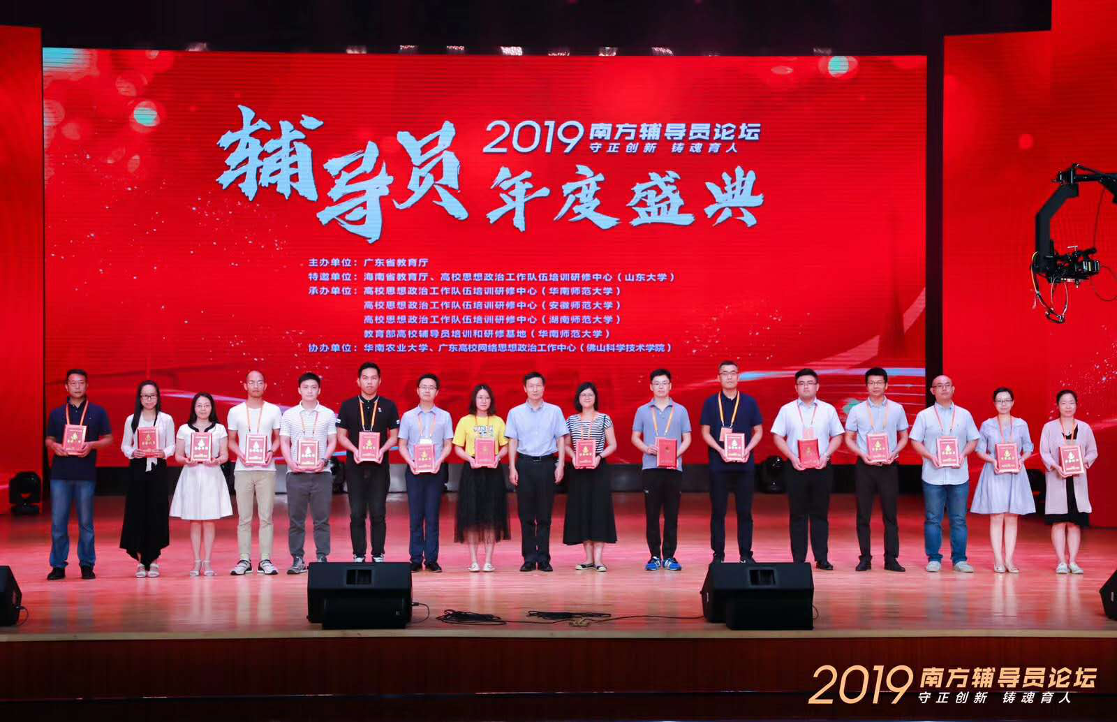 此次论坛为10名2018年度广东高校辅导员年度人物、30名提名奖获得者、58名单项奖获得者、92名入围奖获得者颁奖。中山大学新华学院林少淇、李杏余老师荣获“2018年广东高校辅导员年度人物”入围奖并接受表彰。
