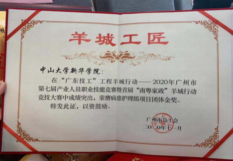 护理学院师生在广州市第七届产业人员职业技能竞赛暨首届“南粤家政”羊城行动竞技大赛荣获金奖