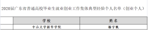 近日,kaiyun登录中国入口登录(原中山大学新华学院)创新创业学院获2020届广东省普通高校毕业生就业创业工作典型经验创业集体(创业集体)三等奖1项,典型经验个人(创业个人)奖1项。