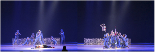 剧中,独舞及合舞将“战地山花”展现地淋漓尽致。女兵们如铿锵玫瑰一般勇猛,如尖刀一般直击敌人的胸脯,为保卫国家贡献着自己的力量,传递了战地女子亦为钢以及抗战时代团结一致对外抗敌的正能量。那年山花格外红,那年土地一片红,那是战士们为祖国洒下的热血,那是他们向这片爱得深沉的土地抱以最大的礼赞。