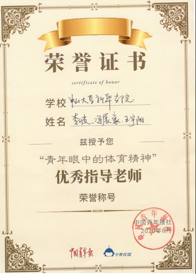 学校党委宣传部(新闻中心)李波、冯展豪、王宇阳获得“优秀指导老师”荣誉称号