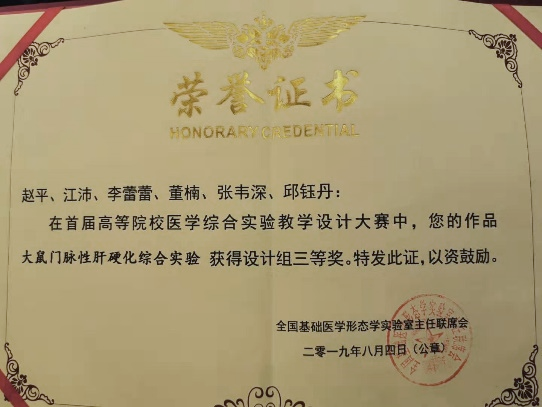 首届高等院校医学综合实验教学设计大赛设计组三等奖奖状
