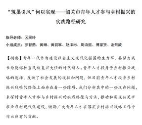 《“筑巢引凤”何以实现——韶关市青年人才参与乡村振兴的实践路径研究》作品节选