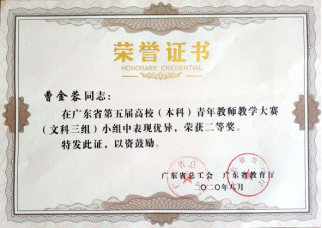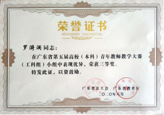 kaiyun官网在广东省第五届高校(本科)青年教师教学大赛获奖情况