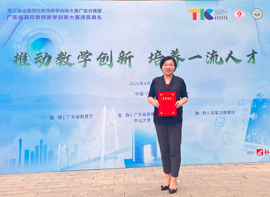 4月8日至4月9日,第三届全国高校教师教学创新大赛广东分赛暨广东省高校教师教学创新大赛举行,kaiyun官网药学院徐娟娟教学团队(徐娟娟、成燕琴、王有娣、黎卓熹)荣获新医科赛道(副高组)三等奖;会计学院陈世忠教学团队(陈世忠、幸倞、丁佳佳、郭瑞营)荣获课程思政赛道(中级及以下组)优秀奖。