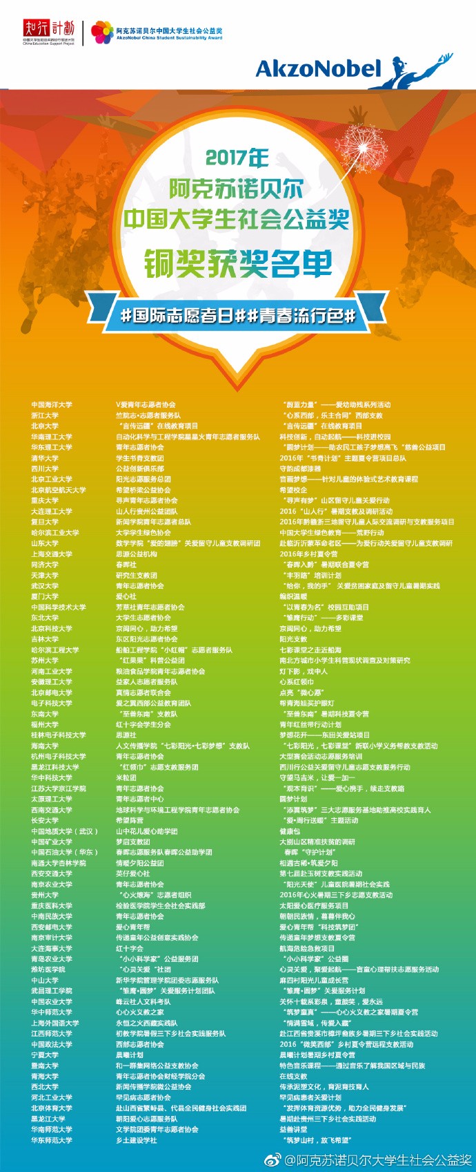 阿克苏诺贝尔中国大学生社会公益奖官方微博