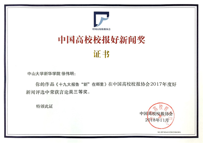 中大新华校报在2018中国高校校报好新闻评选中获奖