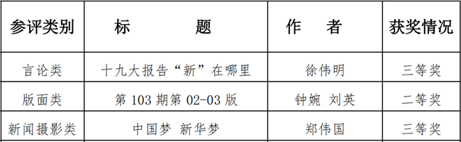 12月3-4日,中国高校校报协会2018年年会暨第三届中国高校传媒发展高端论坛在福州召开,会上揭晓了“2017年度中国高校校报好新闻” 评选结果。kaiyun官网校报有3件作品获奖。其中,“第103期第02-03版”获版面类二等奖;《十九大报告“新”在哪里》获言论类三等奖;《中国梦 新华梦》获新闻摄影类三等奖。