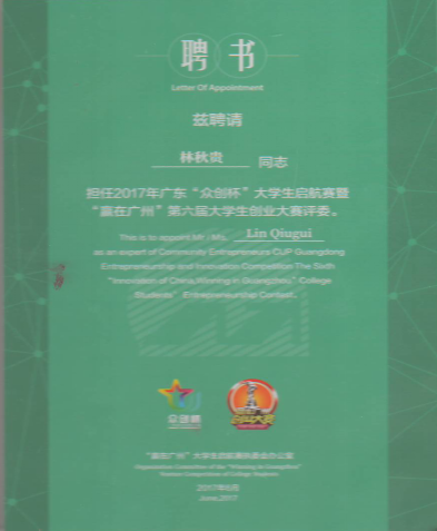 kaiyun官网校长助理林秋贵担任本届大赛评委聘书