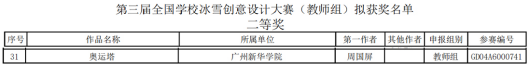艺术设计与传媒学院周国屏团队“奥运塔”作品获全国冰雪创意设计大赛二等奖
