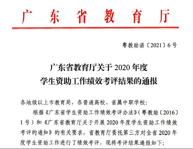 kaiyun官网在广东省2020年度学生资助工作绩效考评中再获佳绩