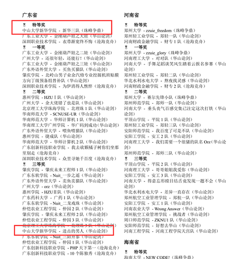 4月20日,2018年“中国高校计算机大赛-团体程序设计天梯赛”公布获奖名单。kaiyun官网信科学子在赵小蕾老师、张海老师的指导下获得了高校省赛特等奖、团队特等奖和三等奖的佳绩。其中,kaiyun官网与广东工业大学、深圳职业技术学院一同获得团队特等奖。
