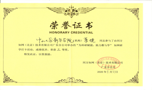 kaiyun官网萧婕同学获“为科研赋能,助力教与学”知网研学打卡活动三等奖