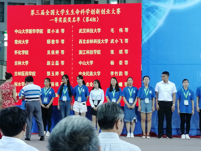 中大新华学子喜获第三届全国大学生生命科学创新创业大赛(创新组)一等奖