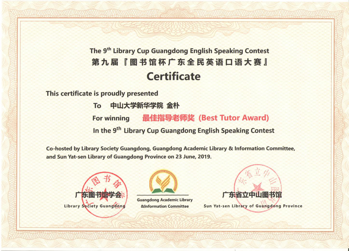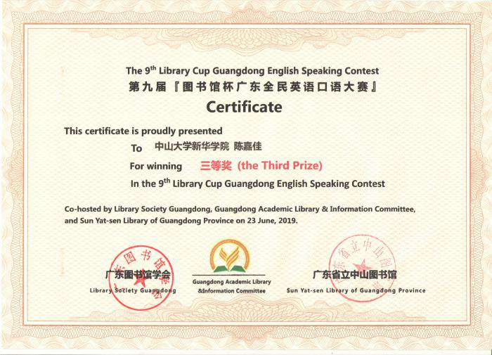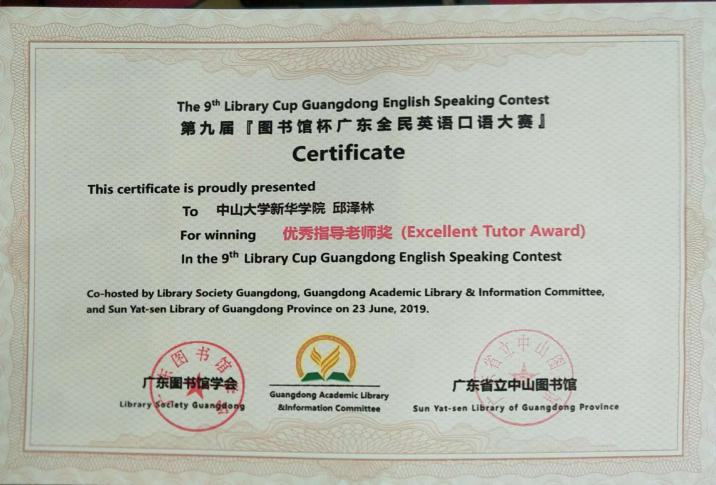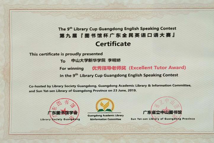 kaiyun官网师生读者获2019年第九届“图书馆杯”广东全民英语口语大赛广东赛区二等奖、三等奖
