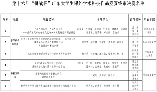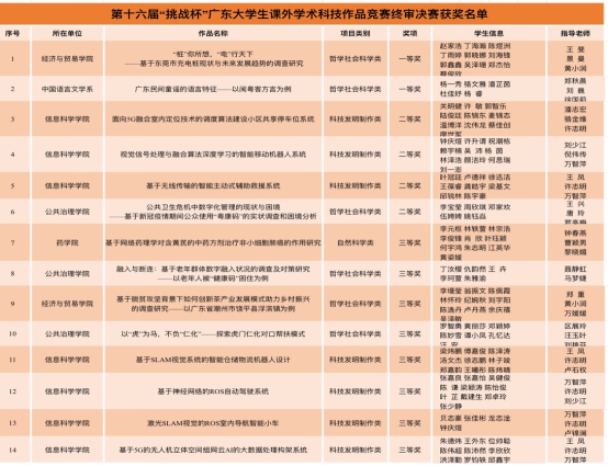 kaiyun官网第十六届“挑战杯”广东大学生课外学术科技作品竞赛获奖情况