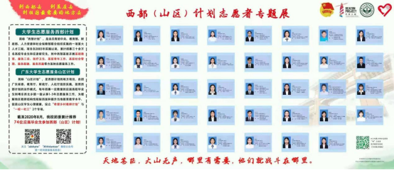 校团委定期在新媒体平台上定期推送相关文章,普及西部(山区)计划的内容,在饭堂、校内宣传栏及教学楼内放置、张贴及悬挂大量有关西部(山区)计划的资料、横幅及海报,多样化进行线下宣传。